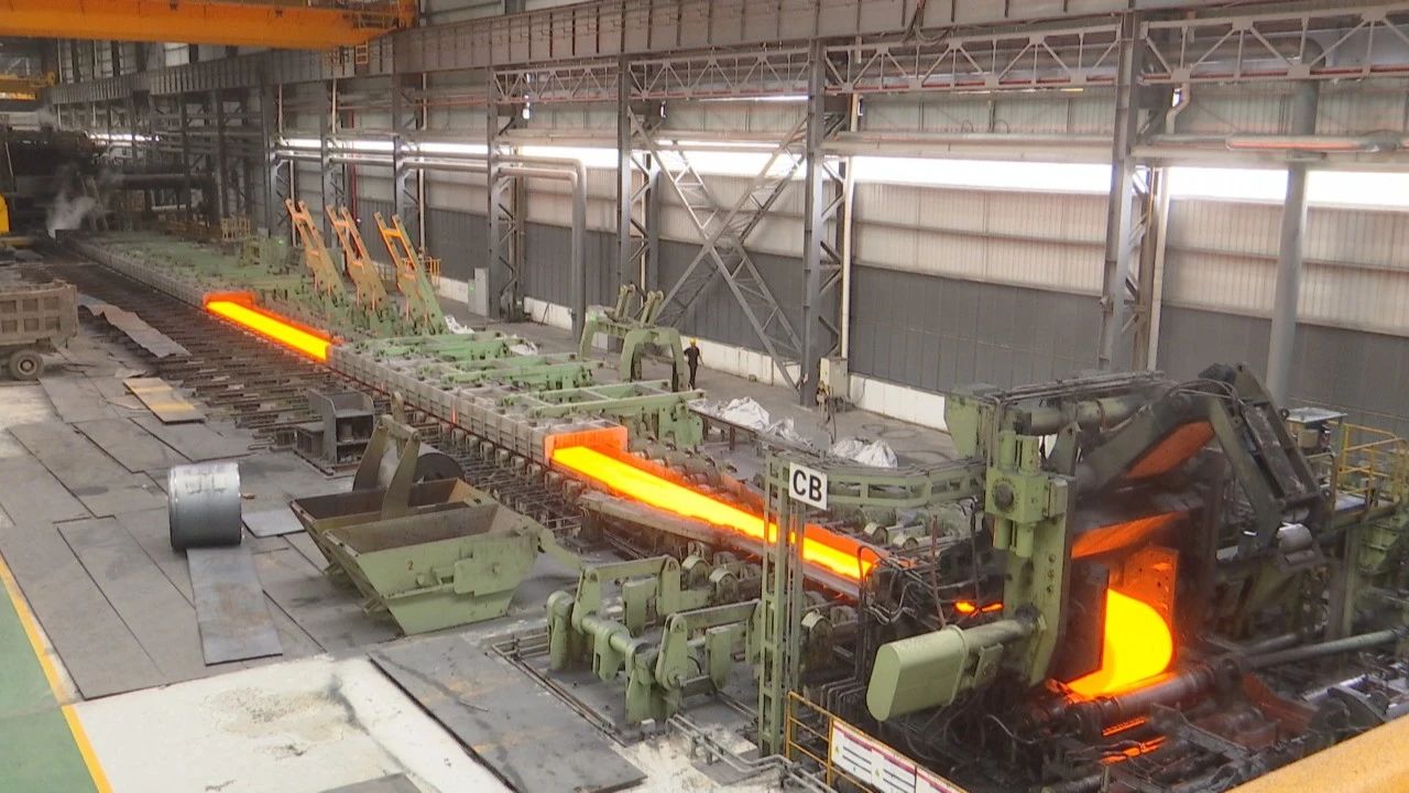 作為園區(qū)龍頭企業(yè)的梧州永達(dá)鋼鐵集團(tuán)高端輕工板材項(xiàng)目車間內(nèi),一派繁忙景象,熱連軋生產(chǎn)線正轟鳴運(yùn)轉(zhuǎn),生產(chǎn)線上通紅的鋼坯高速移動(dòng),工人們?cè)诳刂剖覂?nèi)緊盯著屏幕上跳動(dòng)的數(shù)據(jù),經(jīng)過(guò)道道軋制后,不到3分鐘,卷曲成閃閃發(fā)亮的精密鋼卷,被軌道小車送入成品庫(kù)。據(jù)悉,這條智能化控制程度很高的產(chǎn)線,成功產(chǎn)出超薄純鈦板卷和中寬幅復(fù)合不銹鋼卷,多個(gè)產(chǎn)品填補(bǔ)了廣西空白。